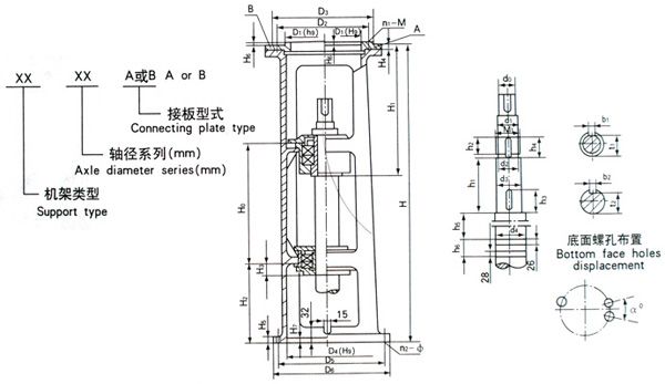 | SJ70A SJ70B | 450 | 487 | 300 | 51 | 20 | 24 | A6 B5 | 6 | A316 B315 | 360 | 400 | A8—M12 B8—M16 | 350 | 420 | 460 | 30 | 12—Φ18 |